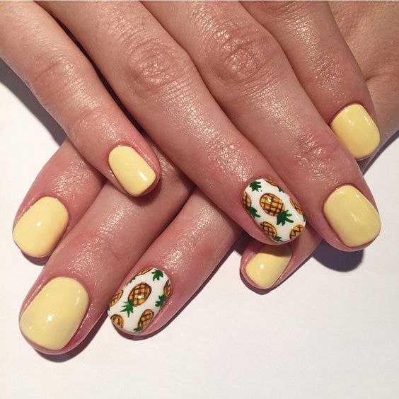 Головною особливістю тропічного манікюру, крім самих малюнків, є кольори. Наймодніші відтінки цього сезону: персиковий, пастельно-жовтий, зелений, рожевий та блакитний – і всі чудово поєднуються один з одним.