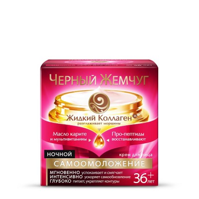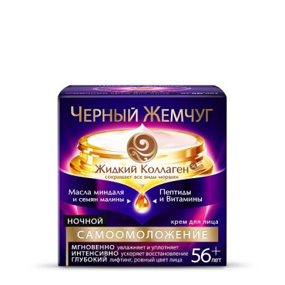 У серії «Чорні перли. Самоомолодження» представлені:догляд за шкірою 26+: денний крем для нормальної та комбінованої шкіри, денний крем для сухої та чутливої ​​шкіри, нічний крем для обличчя, крем-сироватка для повік. Миттєво зволожують та захищають шкіру, розгладжують перші зморшки.догляд за шкірою 36+: денний та нічний креми для обличчя, крем-сироватка для повік. Миттєво зволожують та вирівнюють тон шкіри, відновлюють пружність шкіри.догляд за шкірою 46+: денний та нічний креми для обличчя, крем-сироватка для повік. Розгладжують глибокі зморшки та підтягують контури.догляд за шкірою 56+: денний та нічний креми для обличчя, крем-сироватка для повік. Надають інтенсивний ліфтинг-ефект, сприяють усуненню пігментації. Правильне омолодження – це самоомолодження! Розкрий власний потенціал молодості своєї шкіри з косметикою «Чорні перли. Самоомолодження».