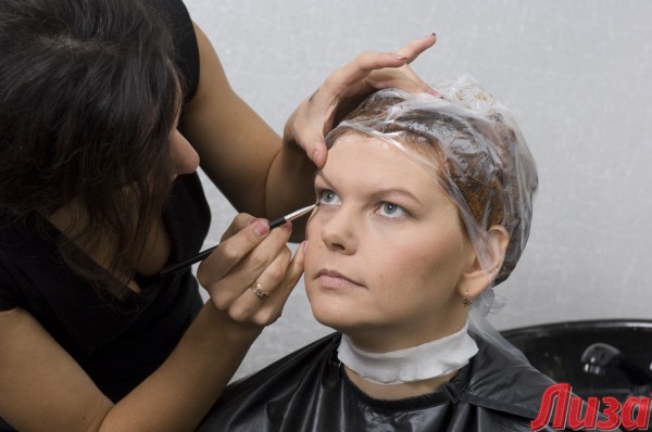 - Осталась одна только прядь. А пока краска будет действовать, Лена отправится на макияж.