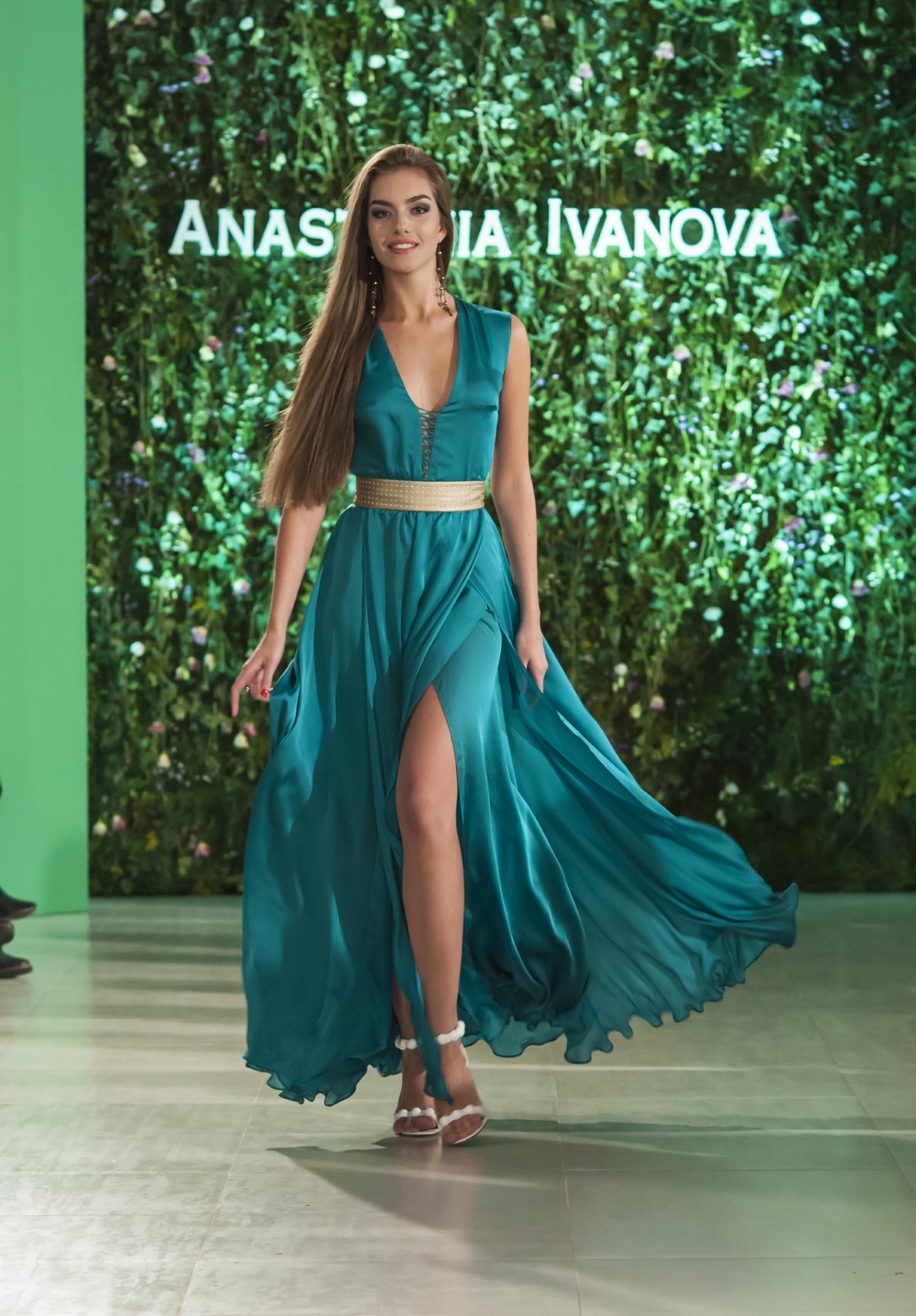 Fashion show Анастасії Іванової у Києві відкрила «Міс Україна 2016» Олександра Кучеренка, яка, на думку дизайнера, втілює справжню красу українських жінок. У свіжому, весняному настрої – відповідно до колекції – був витриманий і подіум, оформлений справжніми живими квітами, над яким працювала квіткова крамниця “Чайна троянда”.