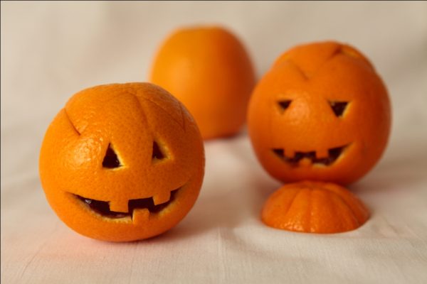 Можеш взяти фломастери намалювати на ній рот і очі, а потім вирізати їх. Такий процес точно сподобається дитині.Можеш обмотати гарбуз бинтом і приробити йому з підручних засобів злі очі.Ще є один цікавий варіант, але для нього тобі знадобиться дриль. Спочатку ти вирізуєш верхівку гарбуза, акуратно вичищає м’якоть, потім свердлиш дірки, перетворюючи їх на візерунки. Потім постав усередину свічку. Варіацій, що можна зробити з гарбузом, величезна кількість! Можна навіть зробити гарбуз на Хелловін з… апельсина. Вмикай фантазію!