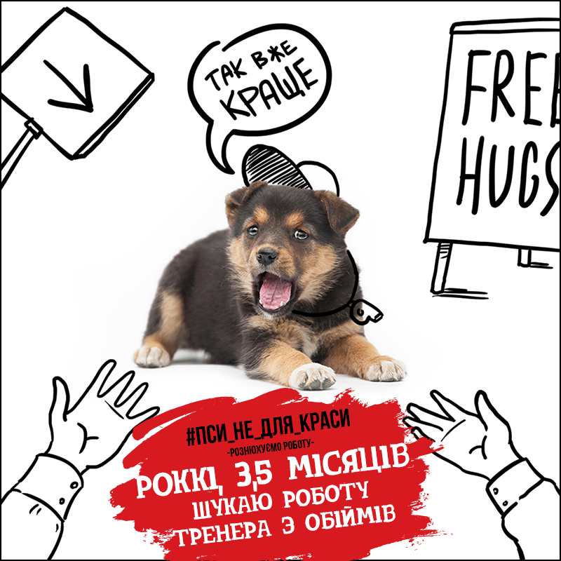Для десяти цуценят створили професійні резюме та розмістили їх на порталі з працевлаштування. Серед них є бебі-сітер, психолог, пейсмейкер і навіть тренер з обіймів. Працюють собачки виключно за кохання. :)«Кохання та вірність не залежать від походження та породи, – каже Поліна Баліцер, в.о. директора Бородянського притулку для тварин.