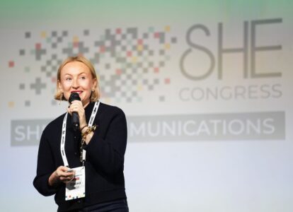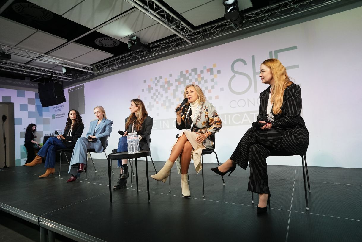 Панель She in Communications за модерації Олени Мошенець (ВРУ) зосередилася на стратегічних комунікаціях і зміцненні брендів. Учасниці: Олена Дерев’янко (PR-Service Agency), Оксана Стехіна (dentsu Ukraine), Ксенія Тюрікова (WTECH), Ірина Мілютіна (SCM).