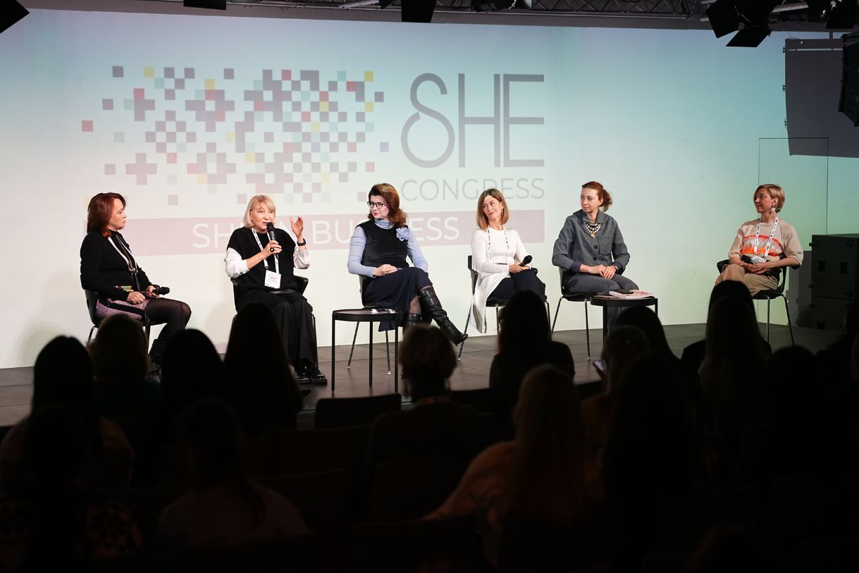 А She in Creative Industries за модерації Іванни Слабошпицької («КИЇВ24») зібрала лідерів медіа та дизайну. Влад Іваненко (Playboy), Антоніна Хижняк (заслужена артистка України), Ірина Метньова (Vandog Agency), Світлана Терещенко (BORISTENE), Анна Мачух (ОМКФ) поділилися досвідом розвитку проєктів та виходу українських брендів на міжнародний ринок. А Тетяна Коровіна («Молокія») розповіла, як креативні рішення надихають жінок на сміливі ідеї та нові проєкти. «Найгірше, що може зробити для себе жінка у креативній індустрії, бізнесі, побуті, загалом у своєму житті, це перестати пробувати нове» – зауважила Тетяна.