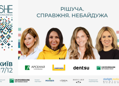 She in Business. Чесний досвід сучасних керівниць про виклики, загартування та нові ролі у бізнесі. Серед спікерів Юлія Завалішина (Київстар), Марина Авдєєва («Арсенал Страхування», Easy Peasy Insurtech), Інна Тютюн (Sense Bank) та інші.