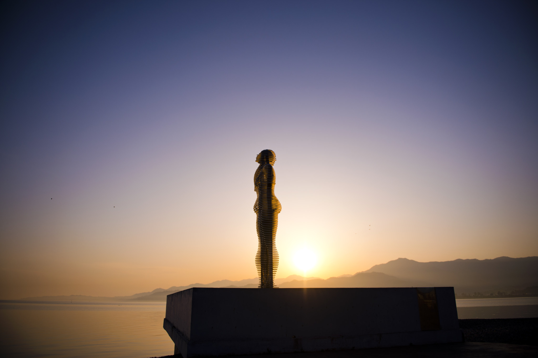 Найзнаменитіша з них, мабуть, «Алі та Ніно». Дві восьмиметрові статуї названі на честь героїв книги Курбана Саїда, яка розповідає про кохання азербайджанця та грузинської князівни. Батько християнки Ніно був проти її шлюбу із мусульманином Алі. І хоча, зрештою, закохані побралися, на їхньому життєвому шляху часто виникали перешкоди, і зустрічі змінювалися розлуками.