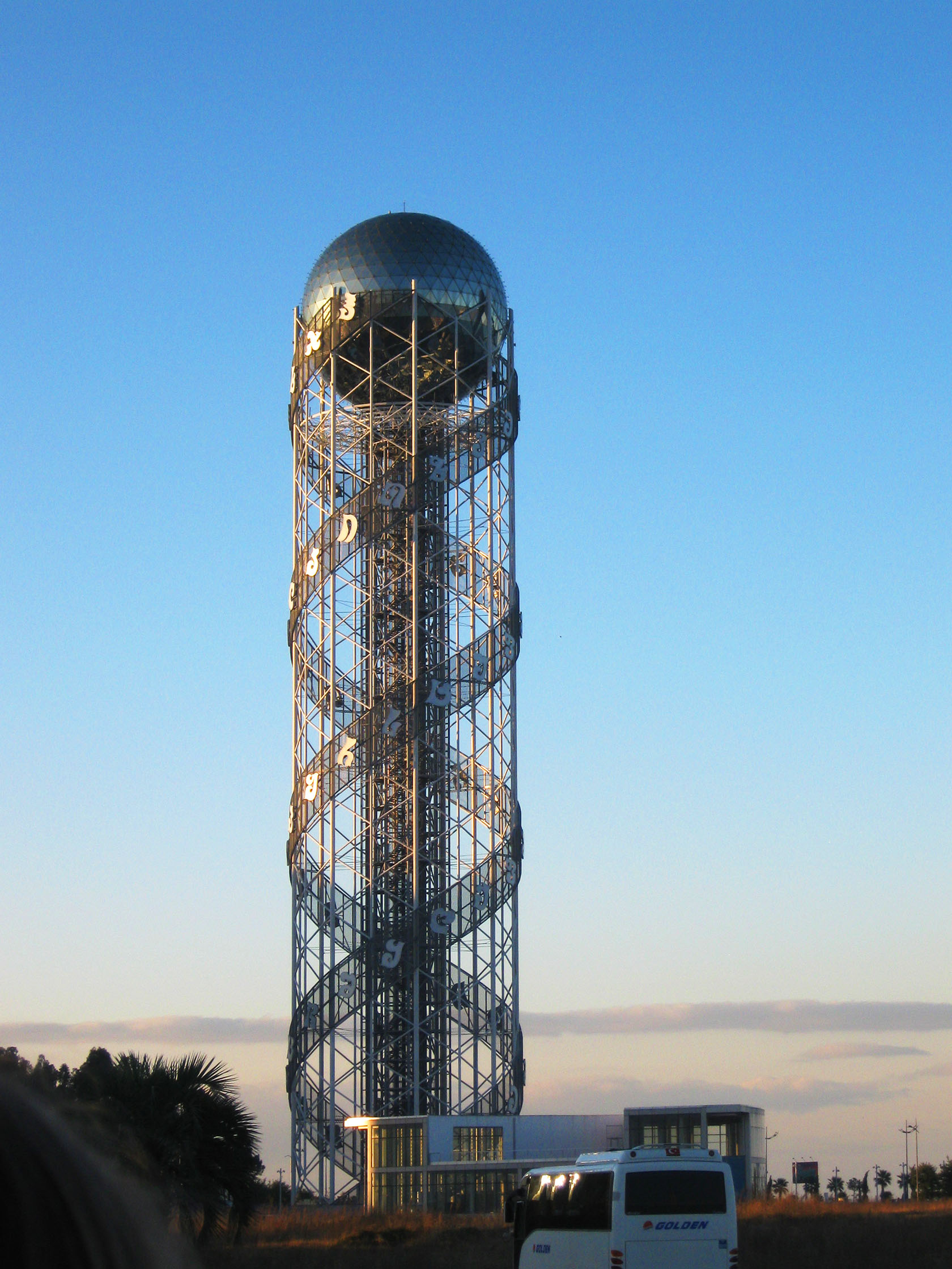 Батумський технологічний університет Неподалік від нього — 130-метровий хмарочос, який стрічками оперізують 33 літери грузинського алфавіту. Місцеві кажуть, що архітектором Башти алфавіту був вірменин, і він хотів додати туди зайву 34 букву (хитрюга!), але його задум швидко розкусили.
