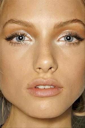 Такого эффекта можно добиться с помощью светлых румян, специального тинта или же кремооразных светлых румян.