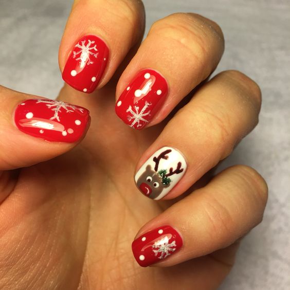 Особенно популярен самый молодой олень Санты — Рудольф. Его изображают больше всего, а среди детишек он самый любимый. Рисуется Рудольф очень просто, но такой новогодний и рождественский символ идеально украсит твой маникюр в празднику.