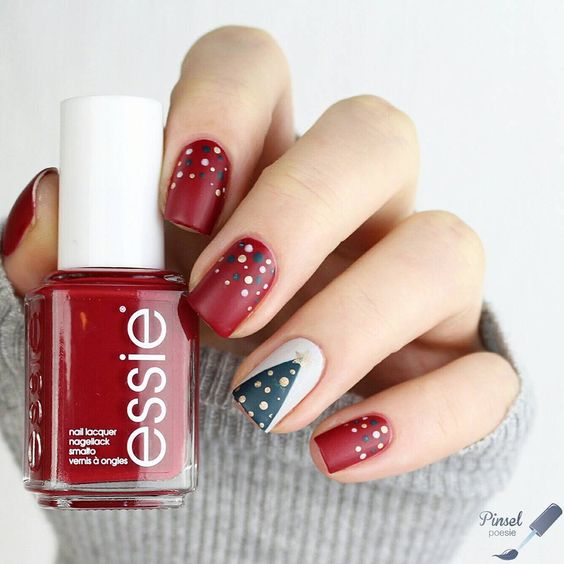 Елки на твоих ногтях могут быть как полноценно прорисованными, с игрушками, гирляндами и снегом, так и схематичными, геометрическими или необычными силуэтами.