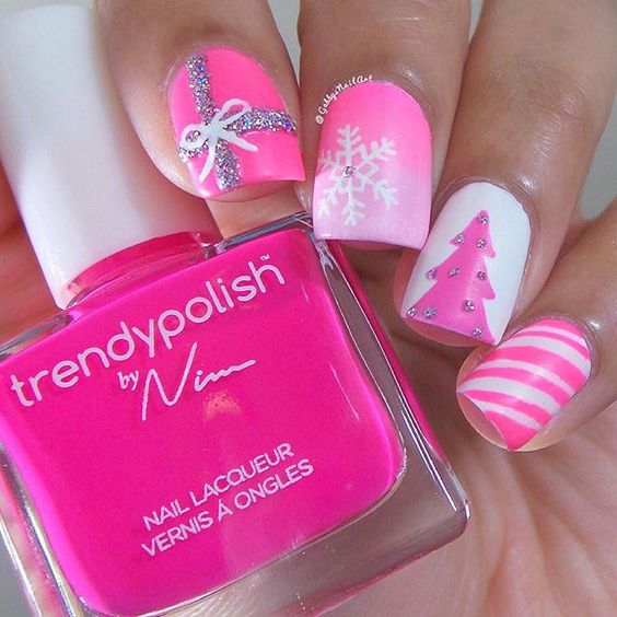 Твои ногти смогут приобрести новогодний вид, если превратить их в потрясающие мини-подарки. Это один их самых простых рисунков для ногтей, но не уступает другим идеям новогоднего маникюра ни в чем.