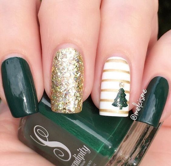 Новый год без великолепных елочек — это совсем не Новый год. Вот и наш список идей для новогоднего маникюра не может обойтись без этих праздничных деревьев, который украшают улицы, дома и магазинчики.