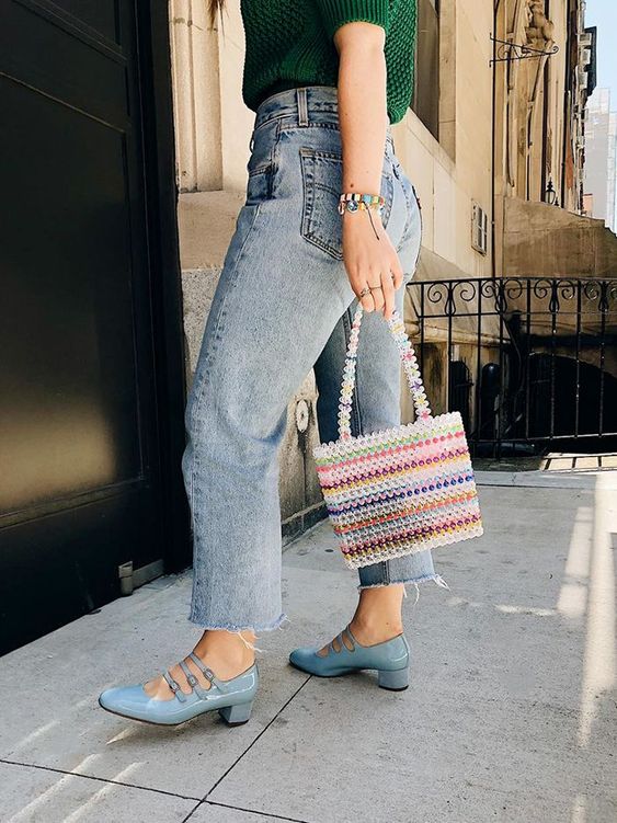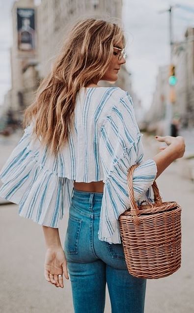 Очень летний и курортный тренд. Впрочем, почему бы не ходить с такой сумочкой в городе. С ней сочетаются свободные блузки и брюки, платья в горошек, полоску и деним. Ты можешь дополнить ее платком или помпонами.
