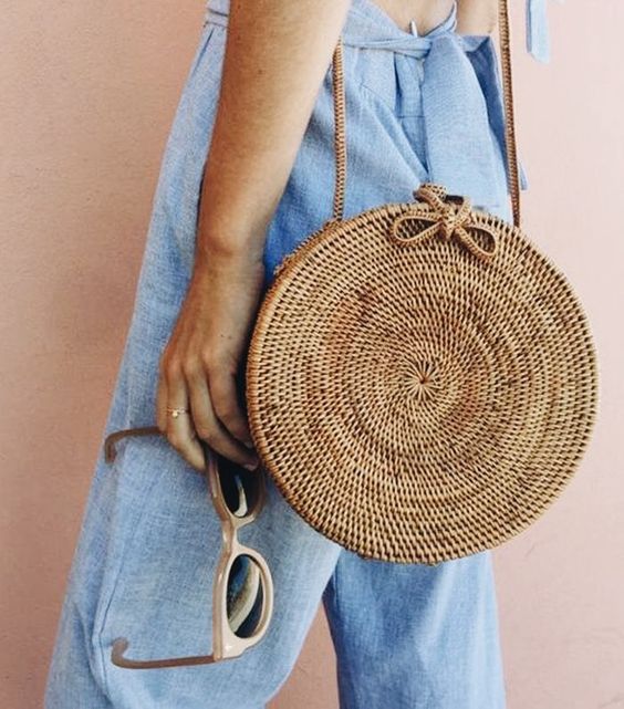 Какое же лето без милой сумки из соломки. Самая популярная модель в этом году — круглая. Диаметр не ограничен. Она сочетается как с пляжными вещами, так и с городскими платьями и джинсами. Она подходит даже для коктейльной вечеринки!