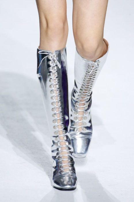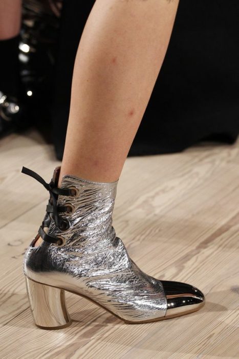Ещё один универсальный тренд в мире моды и красоты, который повлиял на одежду, обувь, аксессуары и даже макияж с маникюром. Обувь, отливающая металликом, будет актуальна, как минимум, всю весну и лето. Особенно обрати внимание на серебряный цвет.