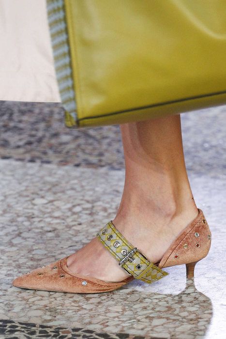 Острый продолговатый носок снова в моде! Его использовали как для обуви на низком ходу вроде лодочек, так и для небольших каблуков. Самые модные каблуки для острых носков: низкие рюмочки и квадратный низкий каблук.