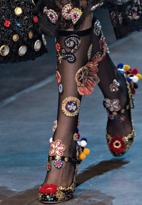 Чем более необычные и заметные чулки, тем лучше. Такие сочетания можно было увидеть на показах Dolce & Gabbana, Tommy Hilfiger, Miu-Miu, Antonio Marras, Dior и других модных брендов.