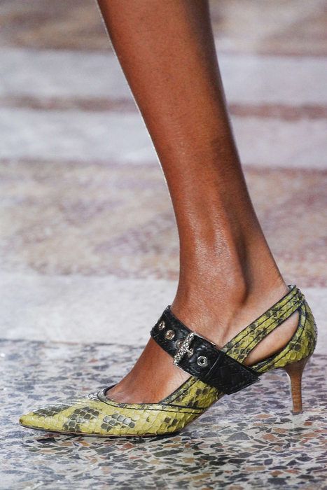 На пике моды роскошная женская обувь из кожи рептилий.В прошлом сезоне акцент делался на кожу крокодила, в этом — на змеиную. В ходу как натуральный оттенки змеиной кожи, так и ярко выкрашенные.