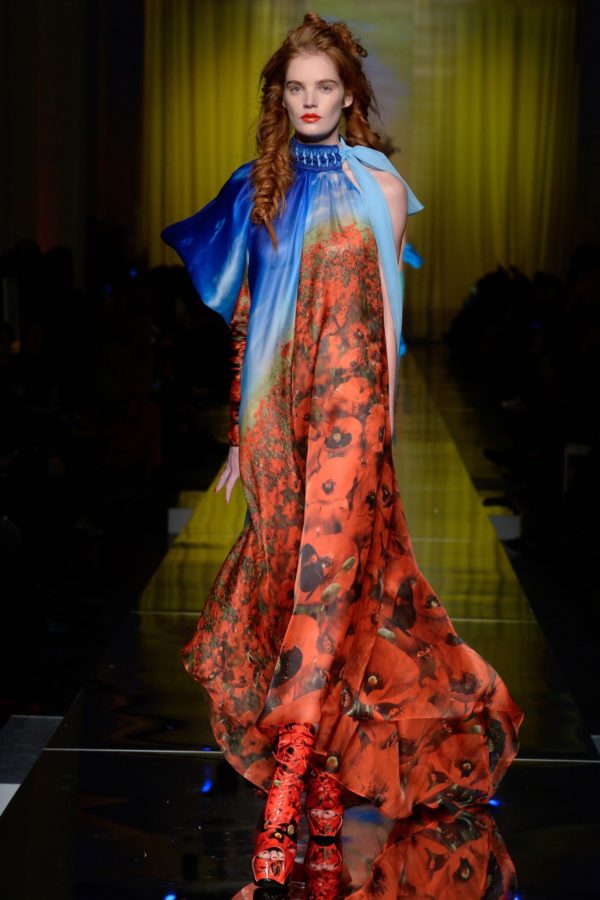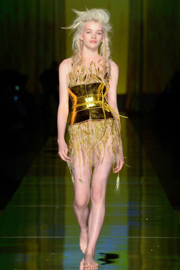 Показ Jean Paul Gaultier это всегда новые открытия и уход от шаблона. Переосмысление цвета и формы, нестандартные решения деталей и предназначения. Неоновые отливы, гипюр, подсолнухи все смешалось.