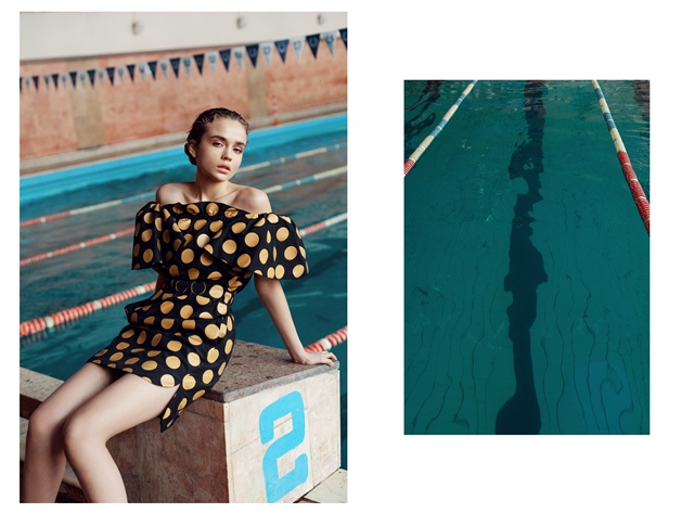 Съемка проходила в одном из киевских бассейнов, и главной ее целью стало новое видение цвета и яркости в рамках строго советского стиля и неизменных стандартов спортивных площадок.