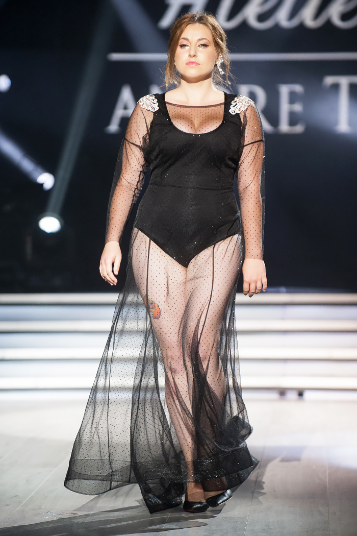 На подиуме красовались девушки с размером одежды XL и демонстрировали потрясающие одеяния, в которых выглядели очень сексуально. Андре Тан наглядно всем показал, что в правильные наряды подчеркивают все достоинства моделей XL.