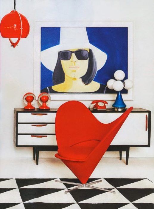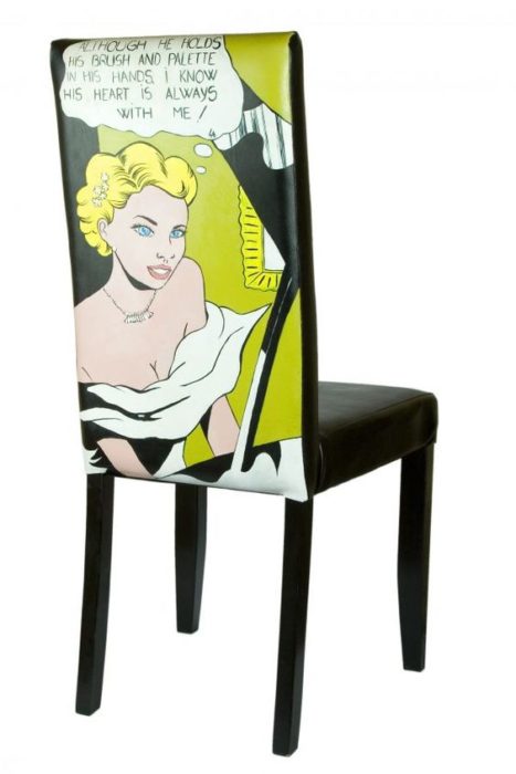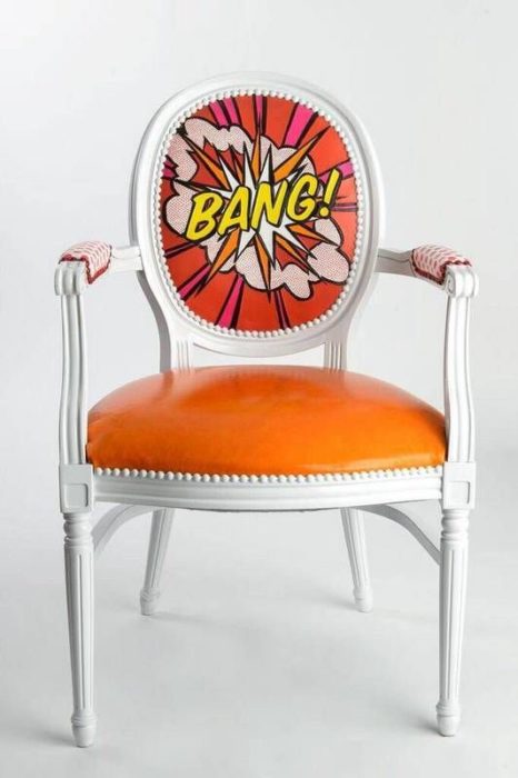 В поп-арте не должно быть много дорогой и роскошной мебели из натуральных материалов. Здесь будет органично смотреться что-то креативное и странное: предметы необычной формы в стиле ретро-футуризма, ярко разукрашенная барахольная мебель, всякие диковинки.