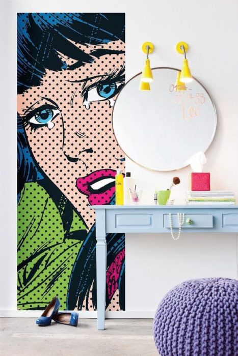 А еще поп-арт прекрасно совмещается с более строгими и сдержанными стилями дизайна, например с лофтом, хай-теком или минимализмом. Декор поп-арта используют и в скандинавском стиле, и в эко-теке, и в средиземноморском — главное, правильно подобрать цвета и формы. Поп-арт прекрасно послужит в оформлении модной студии — салона красоты, художественной мастерской или дизайнерской студии.