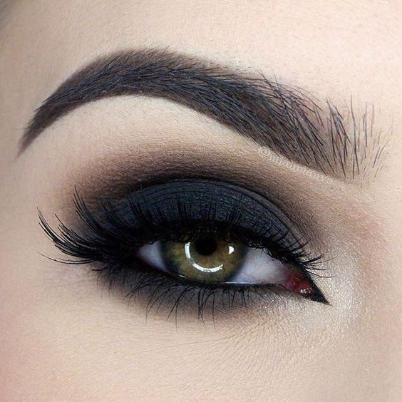Самый эпичный и эпатажный вариант, который, однако, идеально подходит для некоторых образов и мероприятий. Чёрные губы, смоуки айс самых тёмных оттенков в палитре теней, выразительные черные стрелки, тёмные брови и ресницы.