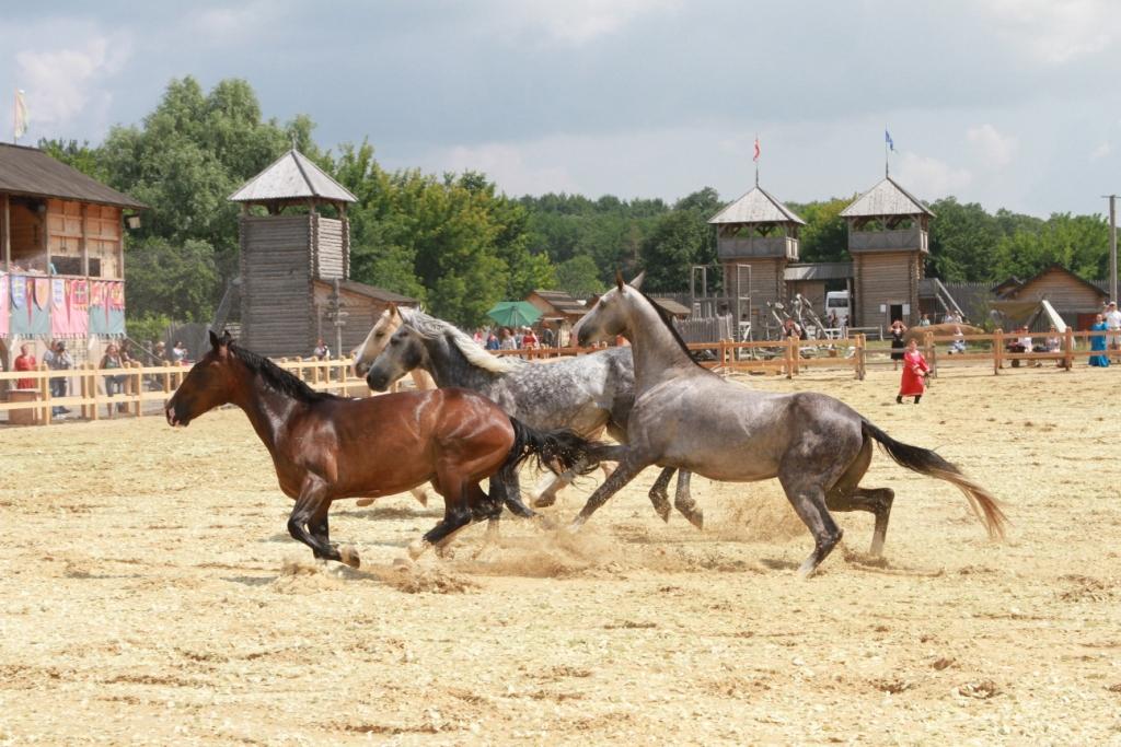 В течение двух дней уникальные скакуны будут главными «звездами программы», конечно, в тандеме с опытными всадниками, актерами-каскадерами конно-трюкового театра Древнего Киева. В эти дни они покажут свои умения и поразят зрителей безупречной джигитовкой и показательными выступлениями по древним боевым искусствам. На главном ристалище состоится парад лошадей. Они во всей своей красе предстанут пред глазами посетителей Княжества «Киевская Русь».