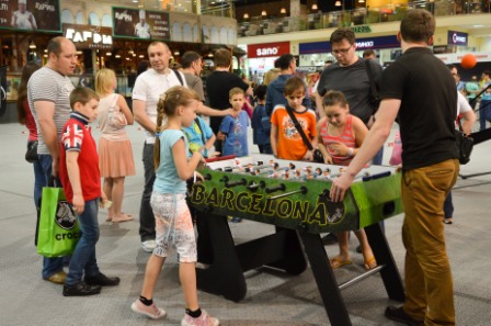 Тех же посетителей, которые не решились испытать свои спортивные способности, ждали детские мастер-классы по фигуркам из шаров, аква-грим, настольный футбол, уроки кулинарного искусства, а также контактный зоопарк, где каждый малыш мог полюбоваться и погладить пушистых домашних питомцев.