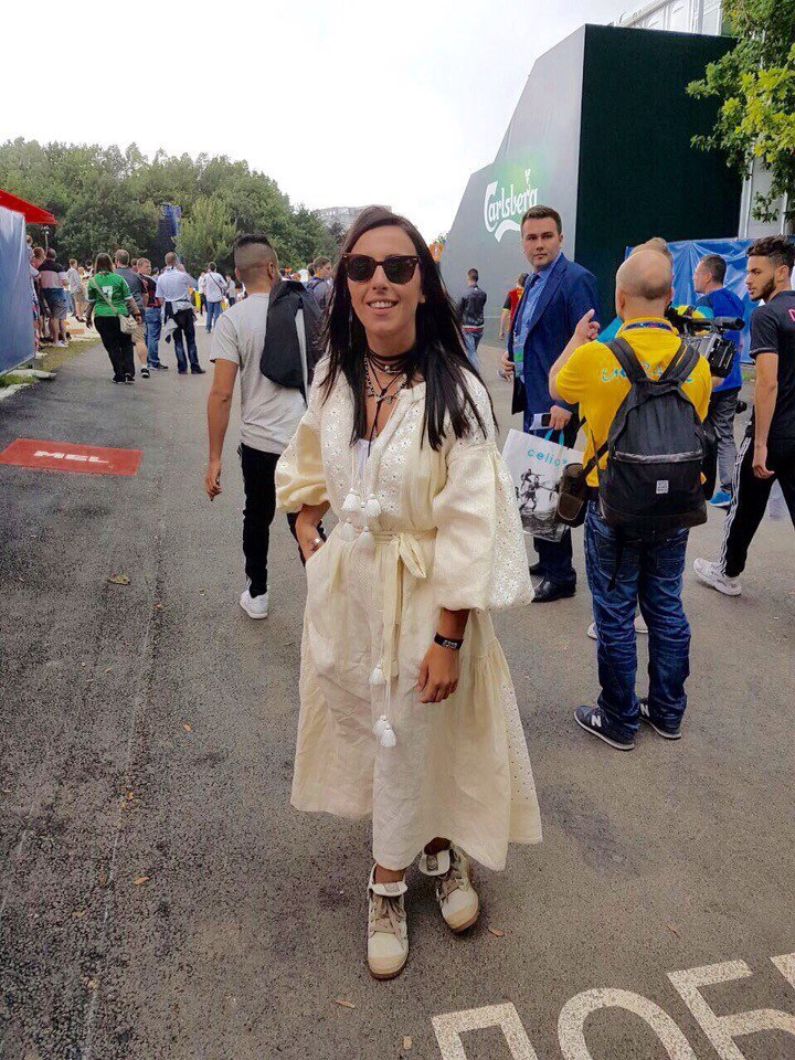 На своей страничке в Facebook певица показала фото со стадиона. А также похвасталась новым нарядом, в котором как раз болела за Украину.