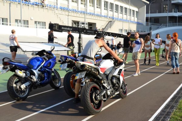 Съемки проходили сутки на нескольких локациях. Например, днем на столичный велотрек выехали девушки-байкеры, что сразу собрало много любознательной публики, которая то и норовила попасть в кадр. Девушки просто приковывали к себе взгляд и не давали оторваться – так круто они гоняли. Тот момент, когда вся съемочная группа сама кайфует от экшена. Кран, дрон, стедикам – режиссерская команда использовала все технические фишки, чтобы снять крутые кадры.