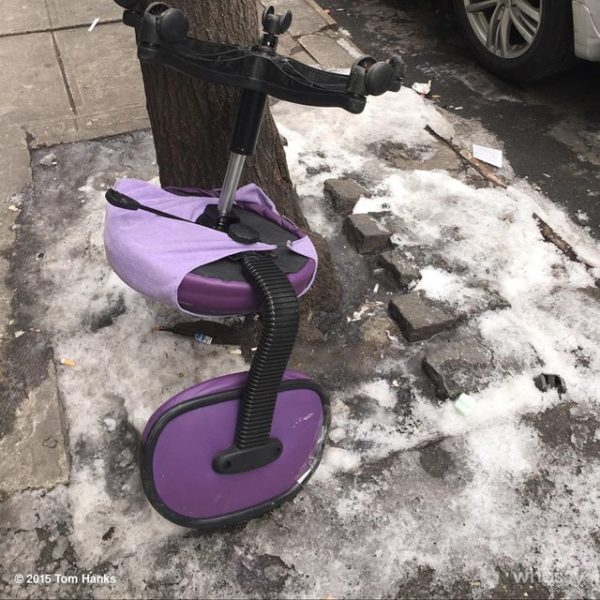 Том предпочитает фотографировать утерянные, забытые или выкинутые вещи и уже собрал целую коллекцию фотоснимков. Чего там только не увидишь: перчатки, обувь, шапки, игрушки и даже стулья с автомобилями.