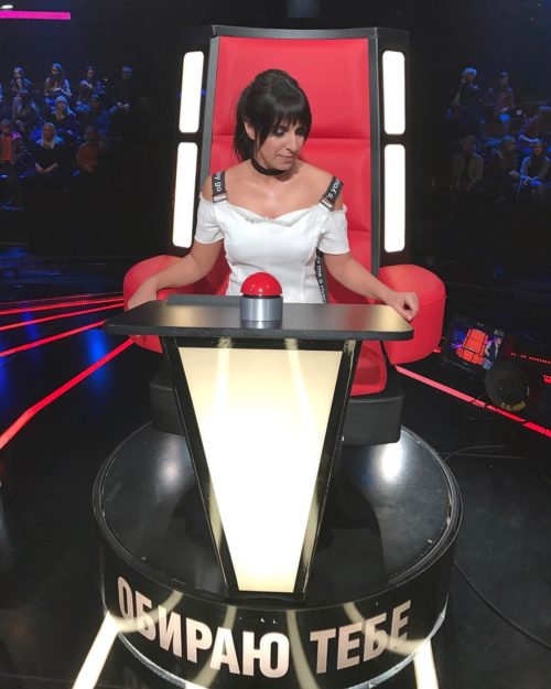 Победительница «Евровидения-2016», новый тренер Джамала для съемок «слепых прослушиваний» выбрала белое свободное платье от украинского дизайнера ALONOVA, которое стилисты дополнили модным черным чокером и ботинками на тракторной подошве.