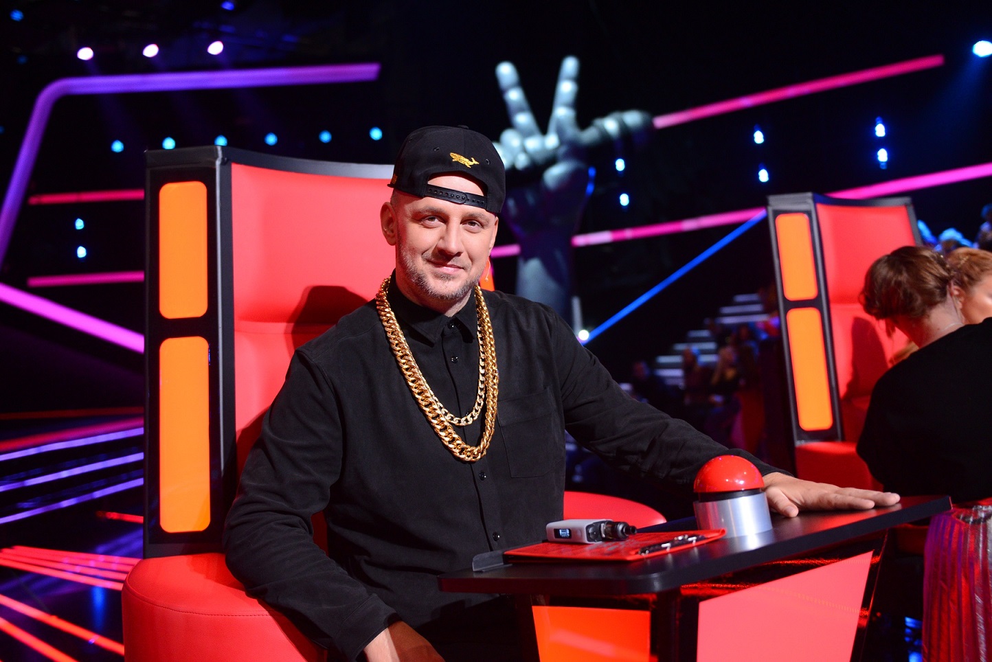 Потапа зрители могут увидеть в классических черных брюках и рубашке, дополненной двумя массивными золотыми цепями и кепкой с изображением «золотых китов».