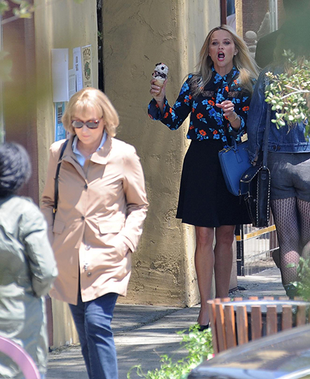 В Сети появились новые фотографии со съемочной площадки второго сезона сериала «Большая маленькая ложь». И надо сказать. что кадры эти очень забавные. Исполнительница одной из главных ролей Риз Уизерспун запустила мороженым в Мерил Стрип. За что же она так с ней?