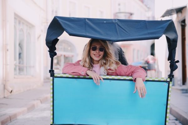 Светлана сфотографировалась с туристическим паровозом и старинным восточным транспортом рикша, отдохнула на шезлонге и повалялась на весенней траве.