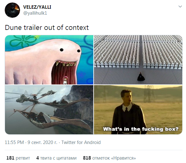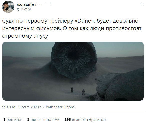 - «Дюна выйдет в кинотеатрах и вселенная схлопнется».