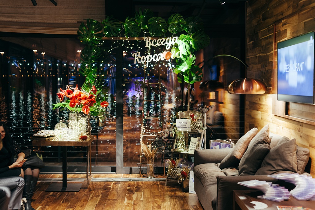 Виктория Королева  — фитнес-коуч, спортивный блогер, ведущая, меценат и мама троих детей создала на вечеринке невероятно уютный и романтичный уголок. Красивая фотозона в обрамлении сотен фонариков стала украшением фотографий прекрасных посетительниц вечера.