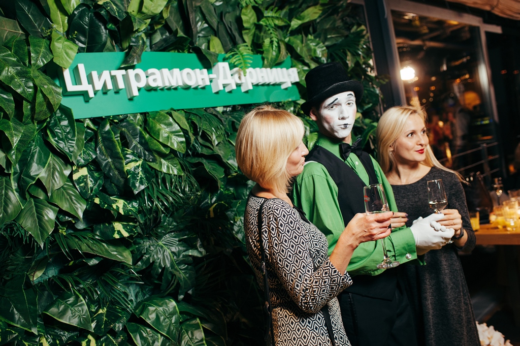 Особой популярностью пользовалась фотозона бренда «Цитрамон-Дарница», словно зеленый оазис встречающая улыбающихся посетителей. В компании веселого мима гости с удовольствием позировали на камеру, а сделанные на память моментальные фото с подписью «Голова кругом от твоей красоты!» еще долго будут напоминать им о 20-летии журнала «Лиза».