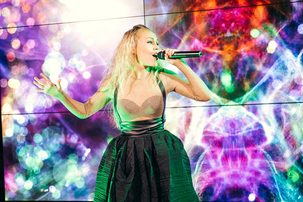 В этот вечер на сцене прозвучали музыкальные поздравления от любимых артистов:  Тони Матвиенко, латиноамериканца с украинской душой Амадора Лопеса и группы Rumbero’s, Alyosha и любимца всех женщин – Олега Винника!