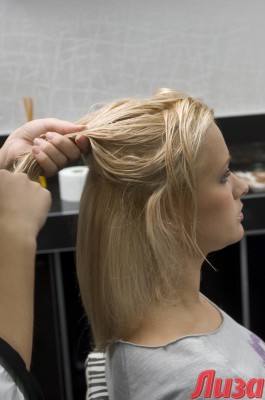 - Хорошо прогреваем волосы у корней, чтобы укладка получилась объемной.