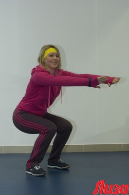 Исходное положение – ноги на ширине плеч, стопы повернуты чуть в стороны. Медленно приседай, держа спину ровно и отводя таз назад. Старайся не отрывать стопы от пола. Медленно возвратись в исходное положение. Упражнение замечательно укрепляет ягодичные мышцы, мышцы ног, прямую и косые мышцы живота.