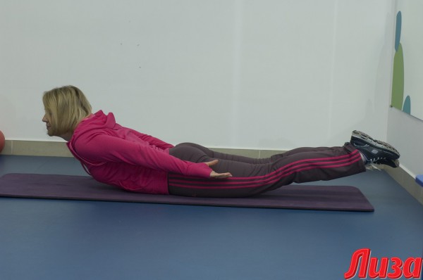 Исходное положение – лежа на животе, руки вдоль тела. Начинай изгибаться, поднимая одновременно верхнюю часть тела и ноги навстречу друг другу. Пола касаются только верхняя часть бедер и живот. На несколько секунд зафиксируй положение и возвращайся к исходной позиции. Упражнение очень эффективно для укрепления мышц ягодиц и нижней части спины.