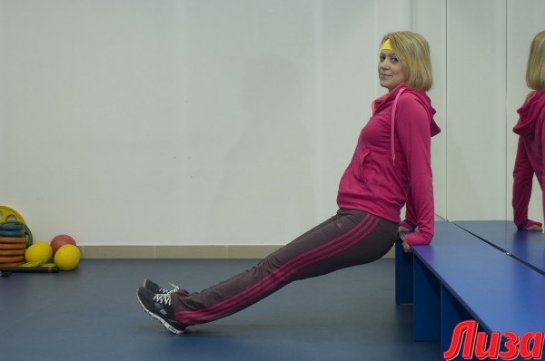 Исходное положение – упор на прямых руках, ладонями упрись в скамейку, туловище держи прямо. Опускай тело до тех пор, пока грудная клетка практически не коснется скамейки. Регулярные отжимания приподнимут грудь и улучшат ее форму. Учти: чем ниже опора – тем сложнее отжиматься.