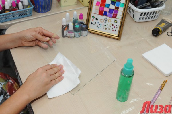 - Чтобы обезжирить поверхность, на которую будет наноситься рисунок, Наташа взбрызнула ее спиртом…