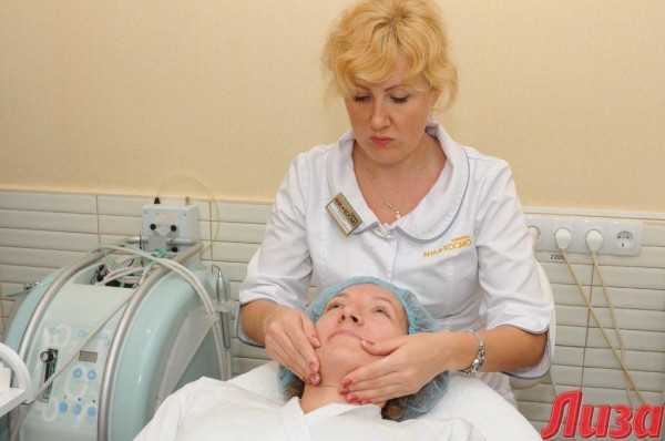 - Врач-косметолог Наталья Ковалева выполняет вакуумно-роликовый массаж.