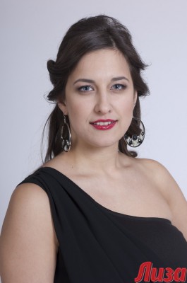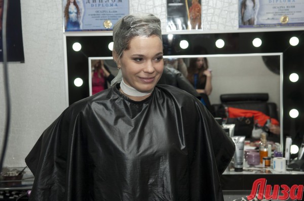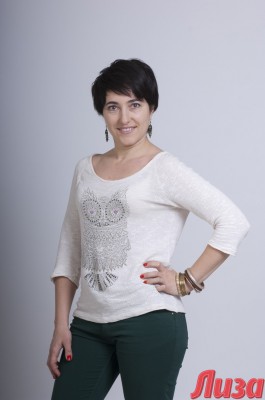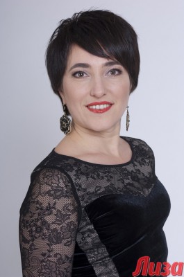 У Оксаны правильные черты лица, поэтому ей идет любая длина волос. Однако стрижка делает ее моложе, а укладка с легкими «небрежными» прядями как нельзя лучше отражает задорный характер. Маленькое черное платье — беспроигрышный вариант. Элегантные гипюровые вставки удачно подчеркнули женственную фигуру Оксаны.