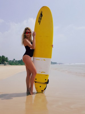співачка Оля Полякова відсвяткувала свій день народження далеко від цивілізації… В свой день рождения Полякова занялась подводной охотой У свій день народження Полякова зайнялася підводним полюванням Після успішного концертного туру та новорічних корпоративів Суперблондинка вирішила відпочити і вирушила зі своїм сімейством на Шрі-Ланку. Співачка знайшла відокремлене від туристів місце, зняла віллу з видом на океан, запросила місцевого шеф-кухаря і віддалася спогляданню тропічної краси далеко від цивілізації. Там Полякова відзначила своє чергове 18-річчя. Святковий ранок іменинниці почався дуже активно. Спочатку Оля ловила хвилю, вправляючись на серфі у пікантному бікіні. Трохи пізніше поєднала дайвінг із підводним полюванням, порадувавши рідних свіжовиловленою рибою та парочкою лобстерів. Артистка не змогла не поділитися святковим настроєм і у притаманній для себе манері звернулася до шанувальників на своїй сторінці в Instagram: «Віку не існує, коли ти маєш міцну попу та гарне почуття гумору», — підписала під спокусливим фото Полякова. Надвечір Полякова запросила до себе до будинку місцевих музикантів: у компанії друзів та продюсера Михайла Ясинського влаштувала не лише святкову вечерю на заході сонця, а й костюмовану вечірку в ланкійському стилі з танцями біля багаття. Нагадаємо, що минулий рік виявився для артистки гіперактивним. У 2015 році Оля Полякова відвідала 28 міст у рамках концертного туру «Шльопали шльопки» та відіграла перший великий сольний концерт у Києві.