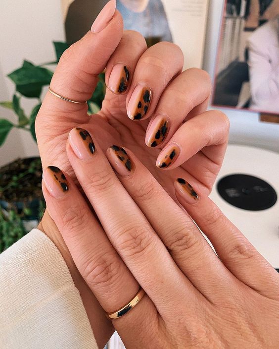 Нюдовий манікюр плюс анімалістичний принт